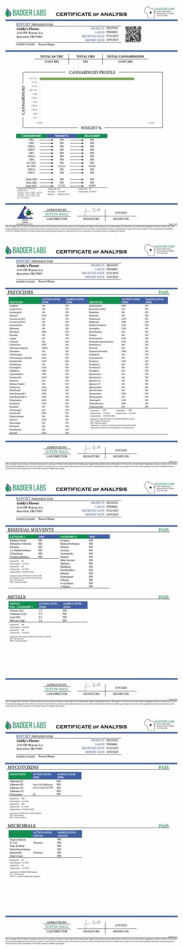 Flavor: Banana Mango — tropical, creamy, and sun-kissed with a mellow finish.