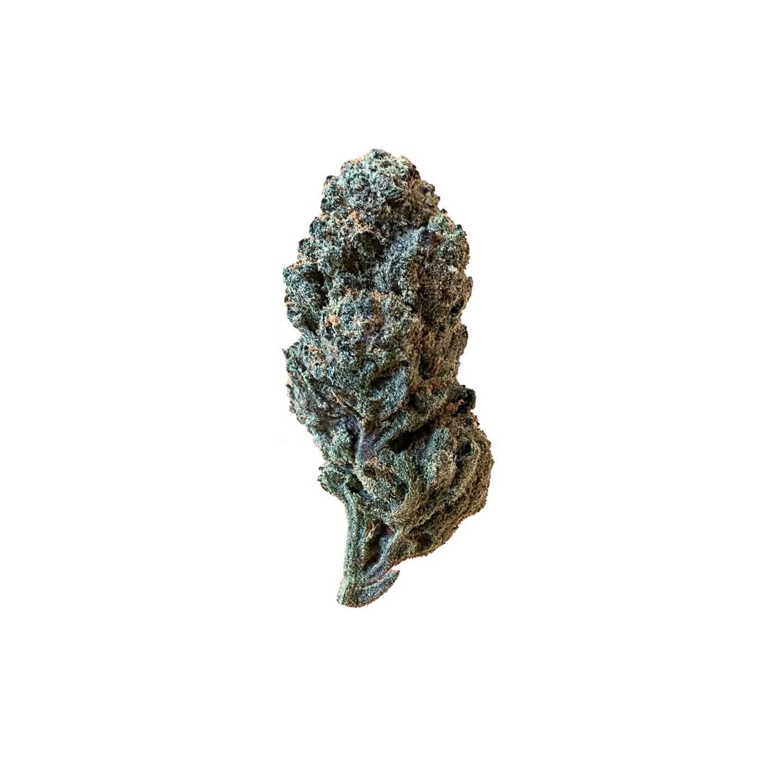 Appearance: Long, conical buds in neon green with deep purple undertones, thick orange pistils, and a sparkling layer of resinous trichomes